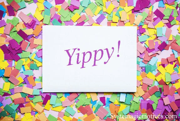 Yabba Dabba Doo! YEAH BABY!!!!!! Yee-haw! Yeeeeeee Haaawwwwwwwwww! Yessir. Yes'm. Yippee-ki-yay! Yippee-yi-yo-ki-yay! You betcha! You rock!
